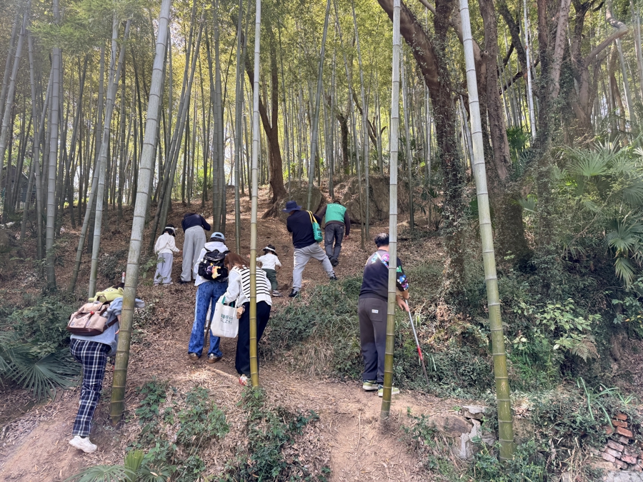 从大门顺着台阶一齐爬到一半,拐进左手边的小径,顺着栈说念走进竹林,望着咫尺对城里东说念主来说可谓“陡峻”的山坡,我意志到挖笋莫得念念象中的那么粗浅。