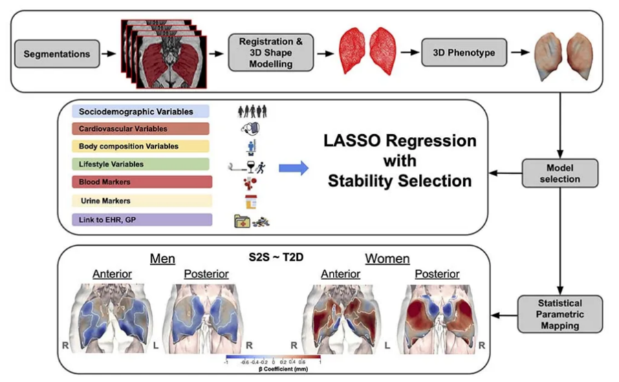 这项研究由英国威斯敏斯特大学团队主导,首次采用3D MRI形状映射技术,精细捕捉臀大肌的形态变化,并将其与多种健康指标关联。通过对英国生物银行(UK Biobank)中超过6.1万例MRI图像,结合体力活动、握力、久坐时间、衰弱状态等86项变量进行分析后得出结论: