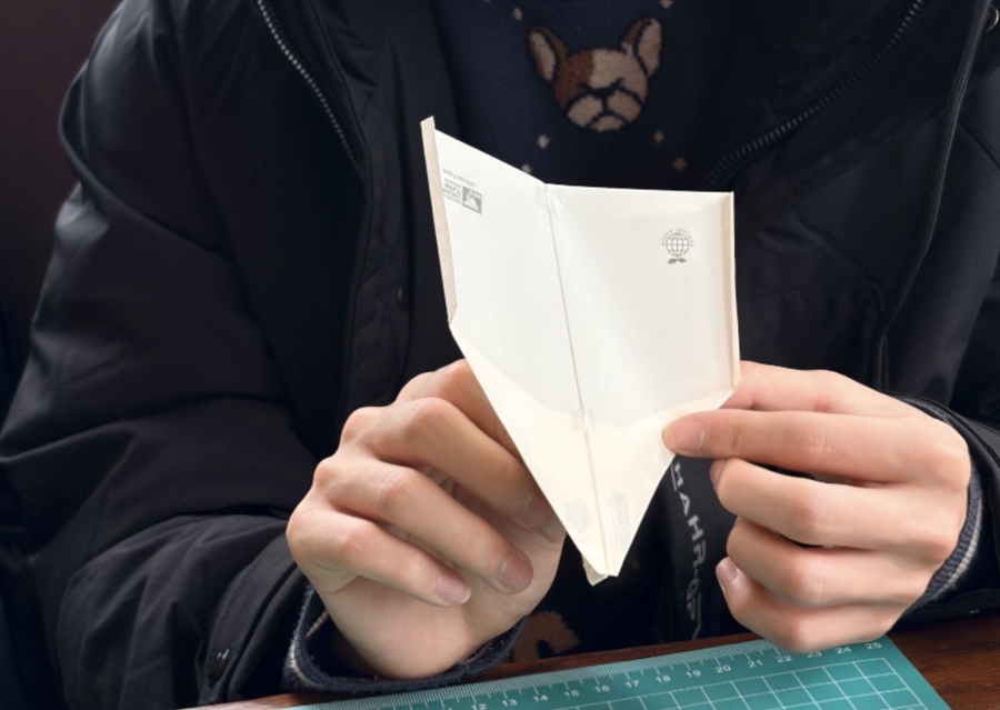 月朔那年,刘力文和同伴折了一架体式如燕的纸飞机。