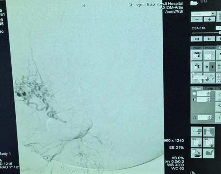 第一棒交给肿瘤介入科主任张学彬。在DSA(数字减影血管造影)的精确调换下,张学彬凭借娴熟的本事,生效找到并栓塞了肿瘤的多支润泽动脉,为后续手术毁灭了最大的“路障”。