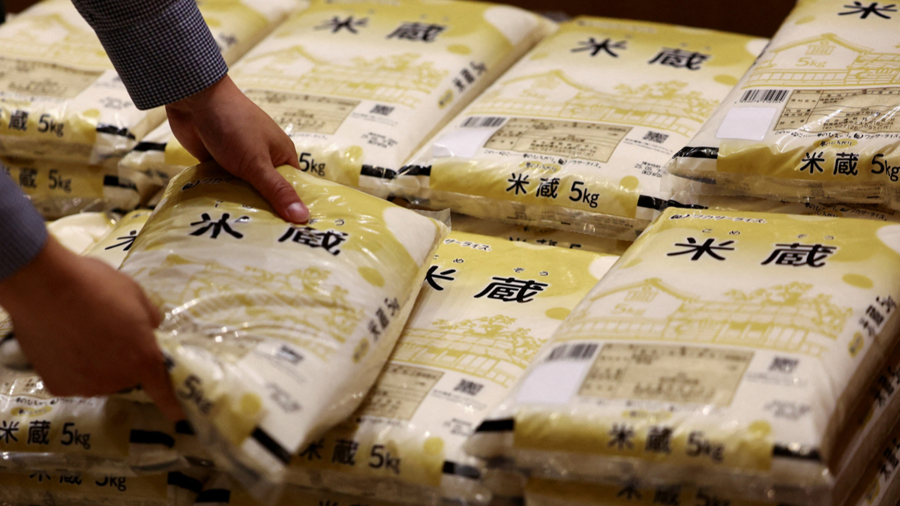 2025年5月31日在日本东京一家杂货店拍摄的储备米。 新华社/路透 图