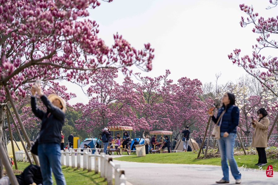 世纪公园内紫玉兰开得正盛。 孟雨涵 摄