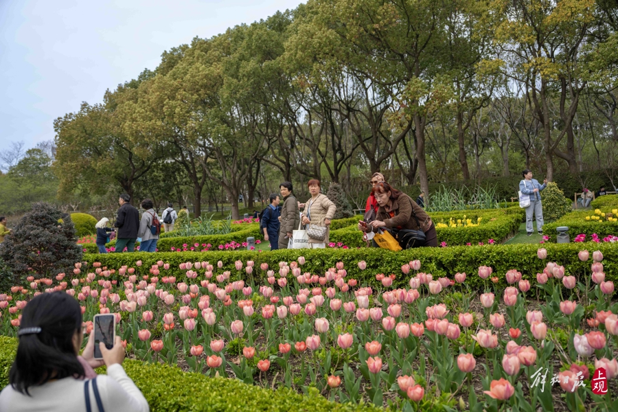 溜达世纪公园,春日好意思景俯拾便是。儿童游乐场旁的草坪区,大片紫玉兰迎来盛放期,与几株正处花期的白玉兰逸趣横生。草坪上各色帐篷杂沓铺开,市民搭客或围坐野餐,或嬉戏畅通、拍照打卡,勾画出一幅稳固又纰漏的春日糊口画卷。音乐喷泉隔壁,各色郁金香风度玉立,成片绽放酿成灿艳花海,成为搭客存身打卡的又一热点点位。