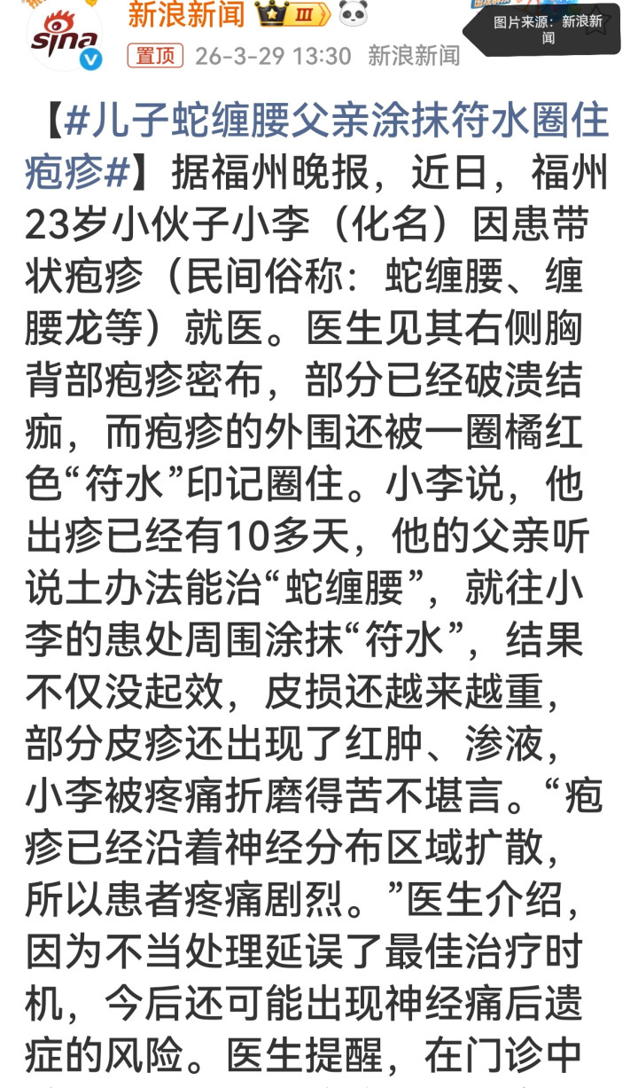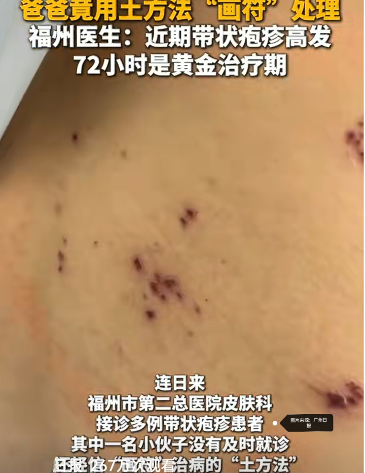 #蛇缠腰涂符水加剧病情 #偏方害东谈主 #带状疱疹调理 #科学就医 #健康科普