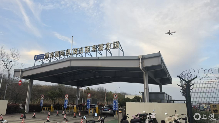 浦东海外机场出租车蓄车场正门。据司机描写,蓄车场内可供1400辆出租车列队等候。