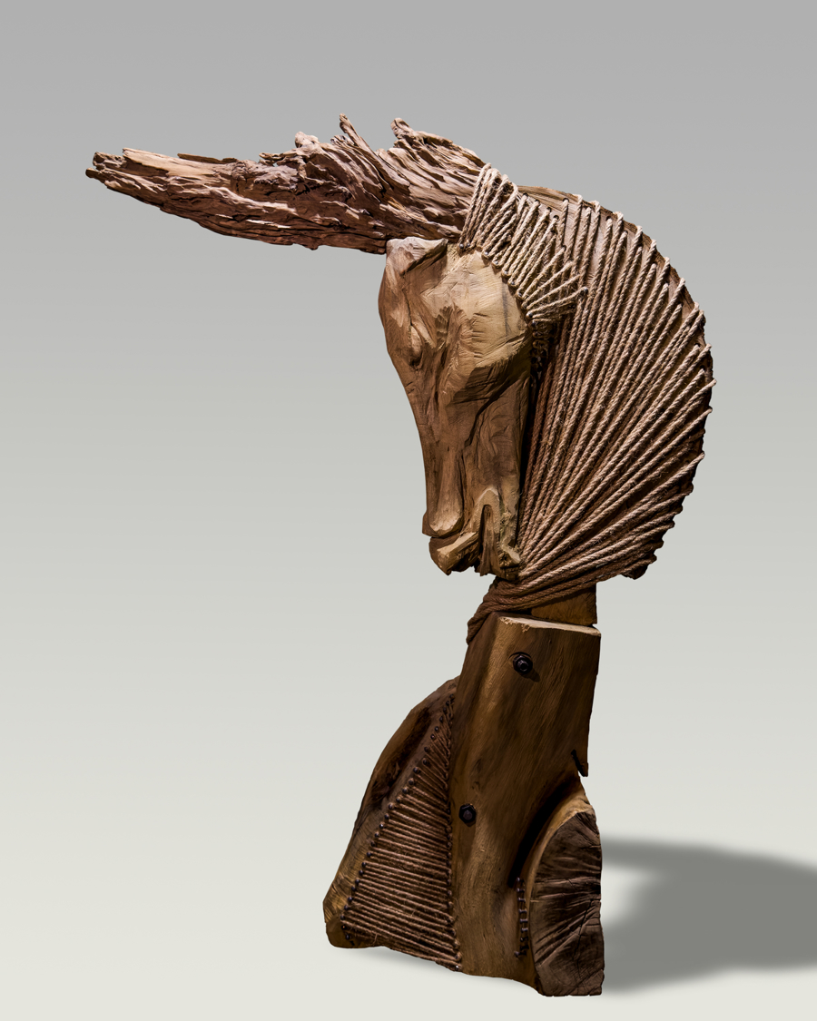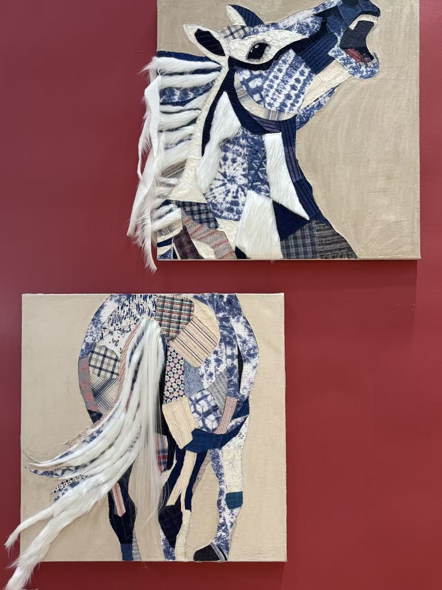 在这里,神话里的马、艺术史中的马与现实生活的马交织共生。策展方在保留国画、油画、版画及雕塑等传统美术形式底盘的同时,大胆引入了诸多意料之外的材质。树枝拼接而成的《丙午马年》透着原始的张力,由木头、麻绳与金属混搭的《风鬃》尽显粗犷之美,而结合了海派剪纸的《一马当先》则细腻精巧。甚至连回形针、铁水等看似不搭界的材料,也被艺术家赋予了马的形态。正如现场观众打趣道:“神马不是浮云,神马都是艺术。”