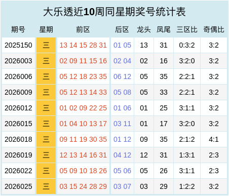 近十周同星期二的龙头号码中有8次开零散数,2次开出偶数;凤尾号码有8次开零散数,2次开出偶数,本期分析龙头凤尾组合开出01+27。
