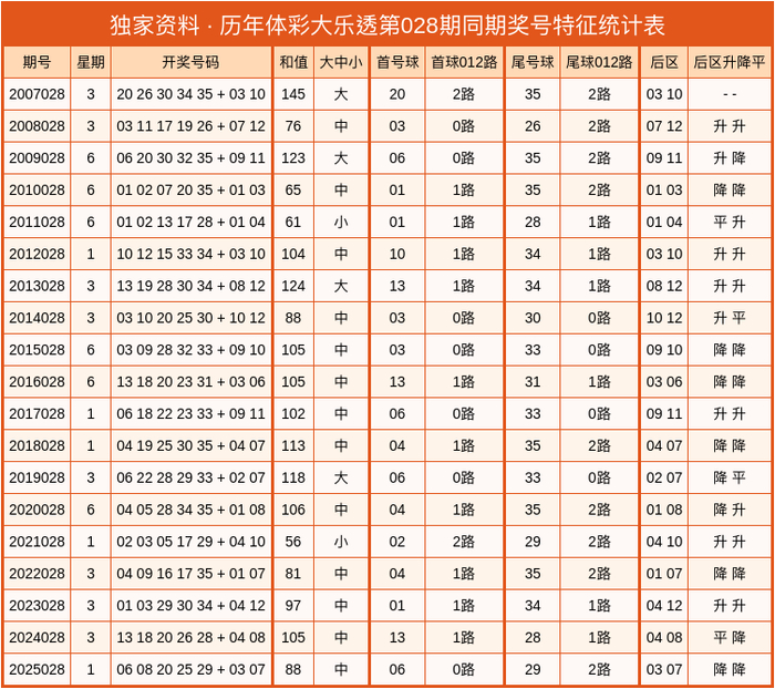 第2026028期大乐透分析号码参考: